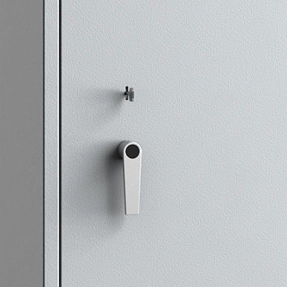 - Zamek: drzwi zamykane zamkiem kluczowym VdS-Klasa I/IMP - Klasa A (standardowo z dwoma kluczami o długości 120 mm))