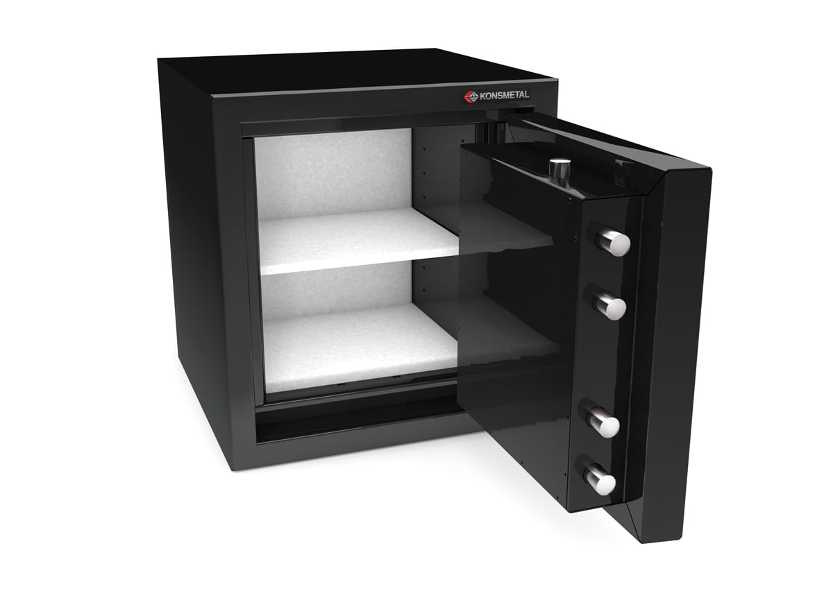 - W zależności od potrzeb użytkownika kasy mogą być wyposażone w wysokiej jakości atestowany zamek: kluczowy, szyfrowy lub elektroniczny, możliwość montażu dwóch dowolnych zamków