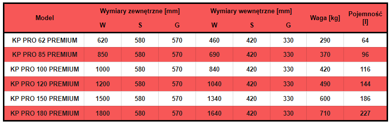 - Grubości korpusu 80 mm, grubość drzwi 143 mm