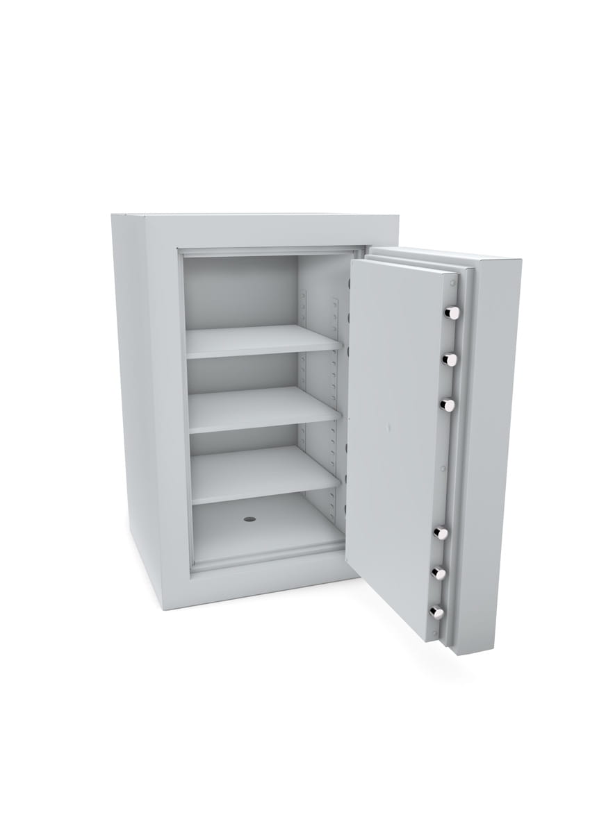 - Najwyższy poziom ochrony antywłamaniowej dzięki nowoczesnej wielopłaszczowej konstrukcji ścian, wypełnionych specjalnym kompozytem betonowym, grubość pancerza # 120 mm, grubość drzwi # 185 mm