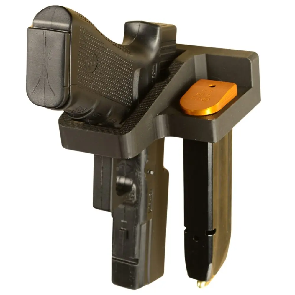 - Uchwyt pasuje do większości pistoletów oraz magazynków 9mm, .45ACP oraz .22LR
