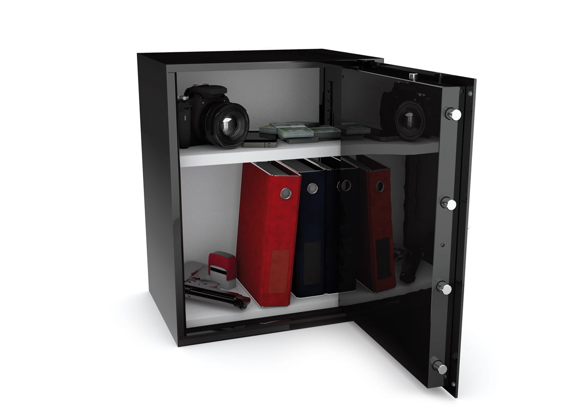 - Specjalna blokada drzwi uniemożliwiająca otwarcie zamkniętego sejfu, nawet po odcięciu zawiasów