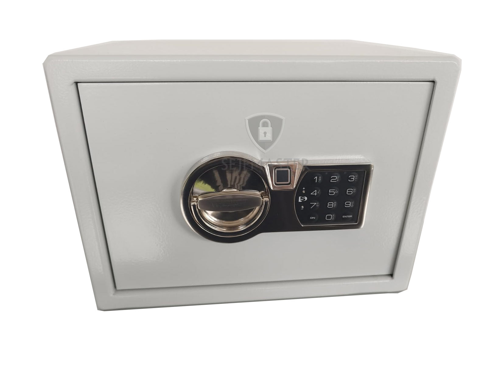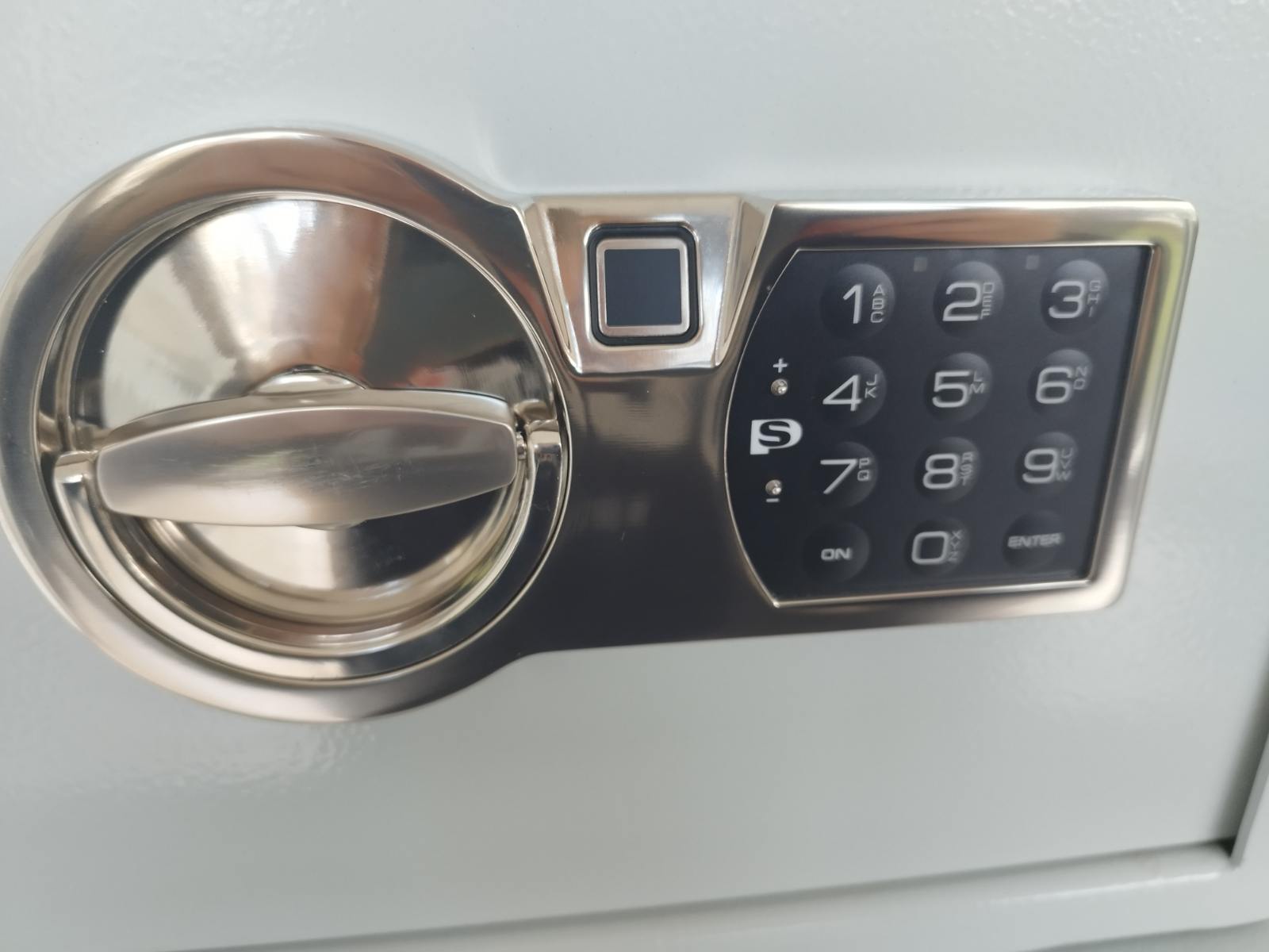 Zamek elektroniczny wyposażony jest w nowoczesny czytnik linii papilarnych, który umożliwia szybkie i wygodne otwieranie sejfu za pomocą odcisku palca. Użytkownik ma do wyboru kilka metod dostępu – tradycyjny kod szyfrowy lub autoryzację biometryczną poprzez skanowanie palca, co zwiększa poziom bezpieczeństwa oraz komfort użytkowania.