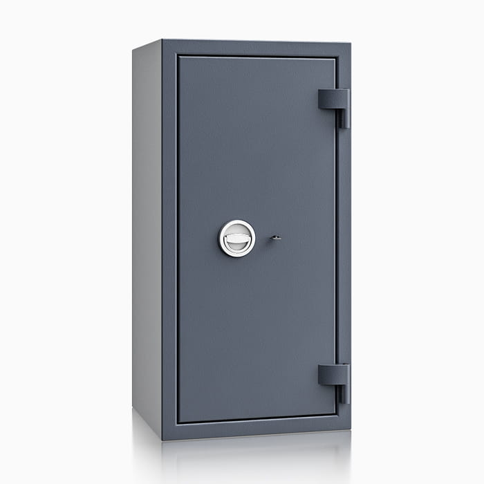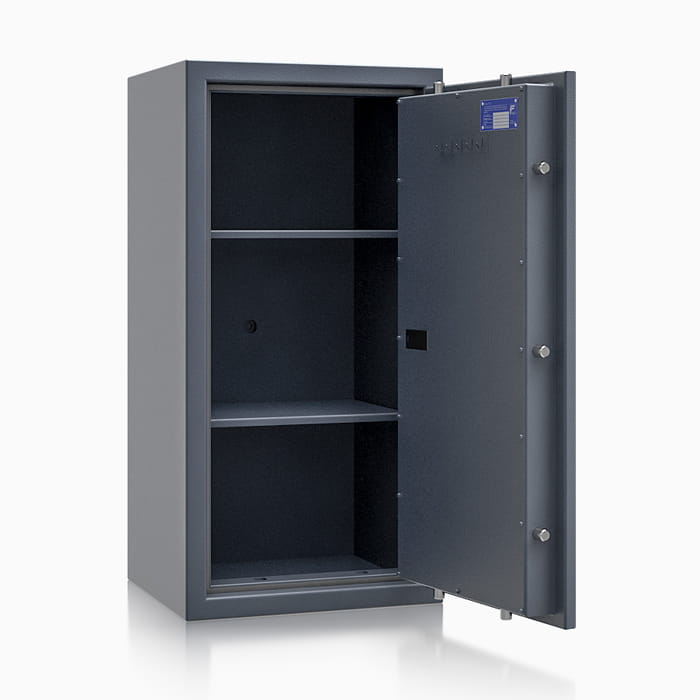 - Zamek: sejf zamykany zamkiem kluczowym VdSKlasa I/IMP-Klasa A (standardowo z trzema kluczami