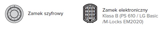 - Zamek: sejf zamykany atestowanym zamkiem elektronicznym w klasie B