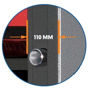 - Blokada termiczna zabezpieczająca szczelinę pomiędzy obudową i drzwiami przed ogniem i wysoką temperaturą