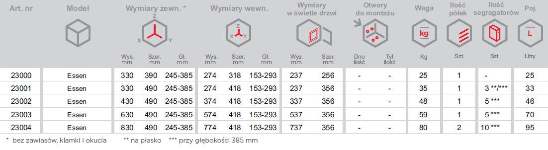 Sejfy serii ESSEN to sejfy Klasy S2 posiadające wyjątkową cechę czyli regulowaną głębokość od 245 do 385 mm przeznaczone do wmurowania w ścianę. Sejfy ścienne są jednym z najbardziej powszechnych rozwiązań do przechowywania broni, amunicji, dokumentów, kosztowności i pieniędzy. Powszechne stosowanie ze względu na łatwość użytkowania i możliwość ukrycia sejfu. Instalowane są w ścianie, co zapewnia podstawową ochronę przed włamaniem, a właściwości ochronne wbudowanych sejfów są określane tylko przez przednią płytę.