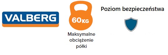- Maksymalna nośność półek : 60 kg.