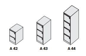 Szafy kartotekowe serii A zapewniają ekonomiczną eksploatację powierzchni biurowej przy zachowaniu pełnej funkcjonalności. Przeznaczone do przechowywania teczek formatu A4 lub segregatorów. Szafę kartotekową cechuje wysoka jakość i perfekcyjne wykonanie co przekłada się na długoterminowe użytkowanie doceniane przez pracodawców. Szafy występują jako dwu-, trzy- i czteroszufladowe.