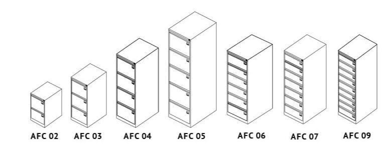 Szafy kartotekowe serii AFC 05 zapewniają ekonomiczną eksploatację powierzchni biurowej przy zachowaniu pełnej funkcjonalności. Przeznaczone do przechowywania teczek formatu A4, stojących wiszących oraz segregatorów. Szafę kartotekową cechuje wysoka jakość i perfekcyjne wykonanie co przekłada się na długoterminowe użytkowanie doceniane przez pracodawców. Szafy występują od dwu-, trzy-....do dziewięcioszufladowych.