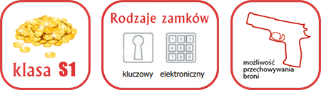 - Wyposażone w skarbczyki wewnętrzne zamykane osobnym zamkiem kluczowym oraz specjalne uchwyty na broń