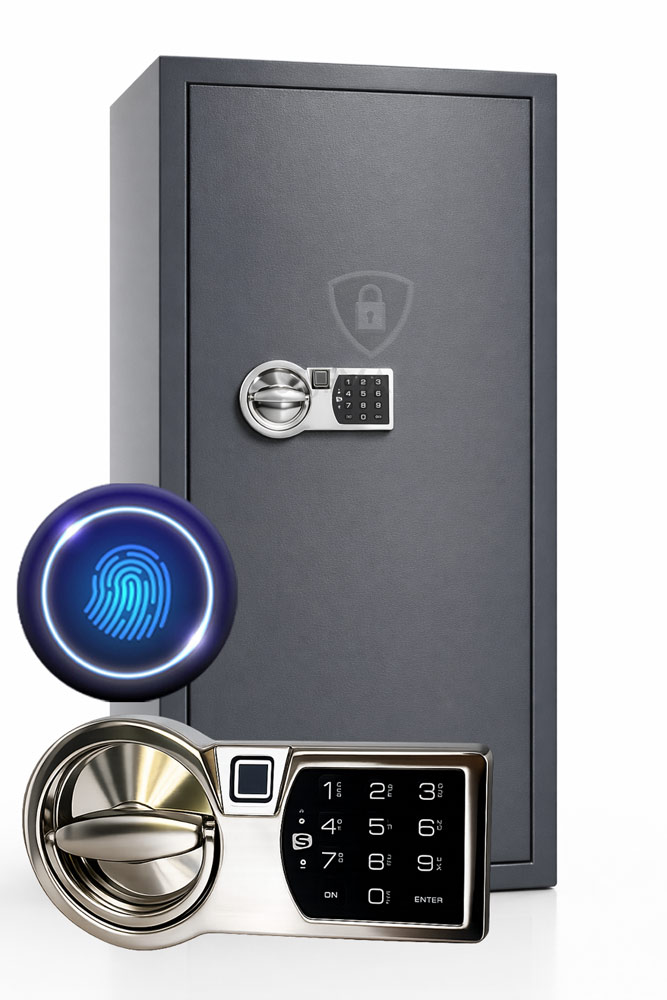 Zamek elektroniczny wyposażony jest w nowoczesny czytnik linii papilarnych, który umożliwia szybkie i wygodne otwieranie sejfu za pomocą odcisku palca. Użytkownik ma do wyboru kilka metod dostępu – tradycyjny kod szyfrowy lub autoryzację biometryczną poprzez skanowanie palca, co zwiększa poziom bezpieczeństwa oraz komfort użytkowania.