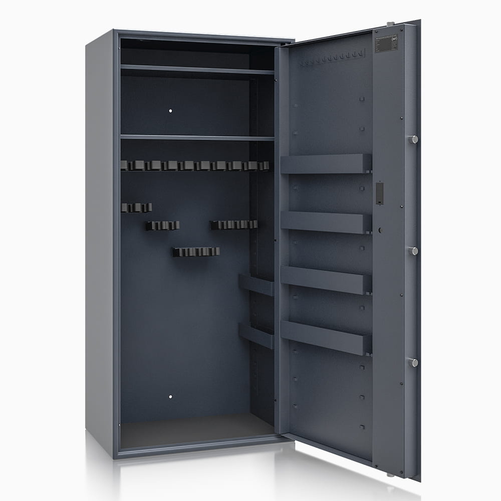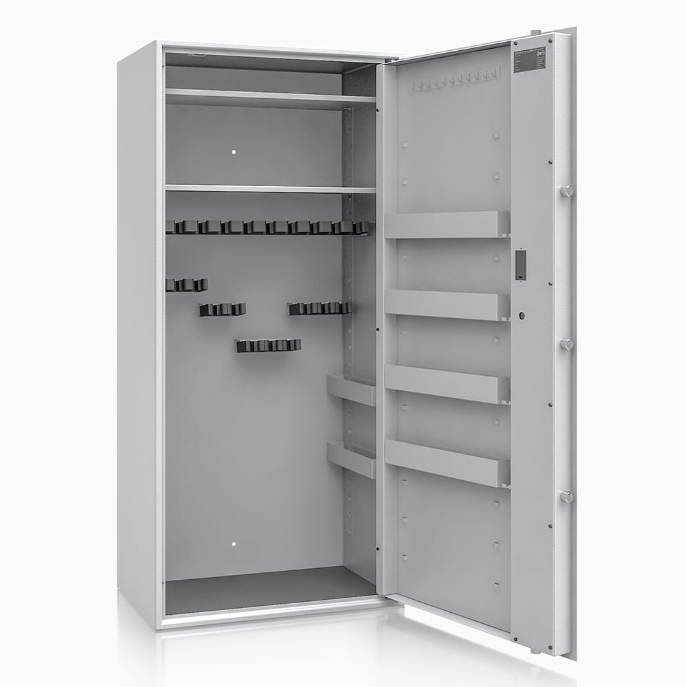 Poprzez możliwość przestawiania na wysokości półki jak i uchwytów na broń – można dowolnie spersonalizować wnętrze, umożliwiając dogodne ustawienie broni o różniej wysokości. Sejf standardowo wyposażony w dwie funkcjonalne przestawne na wysokości półki. Przestawne półki, regulują wysokość użytkową wewnątrz sejfu. Na drzwiach wewnątrz sejfu umieszczona listwa hakowa do zawieszania kluczy, lornetek oraz innych przedmiotów codziennego użytku. Dzięki nowej konstrukcji płyty osłonowej drzwi, zostały umieszczone na niej przestawne półki, które nie zabierają przestrzeni wewnątrz sejfu.