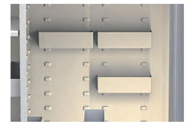 Perforacja na ścianach umożliwiająca wykorzystanie tzw. „martwej” powierzchni ściany tylnej czy bocznych. Liczne zawieszane wg dowolnego uznania pojemniki, pozwalają na stworzenie indywidualnego organizera do przechowywania przedmiotów