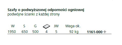 Szafa na dokumenty biurowa o podwyższonej odporności ogniowej - C+P 1161-000