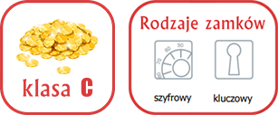 - Zamek kluczowy kl. B oraz szyfrowy mechaniczny kl. B wg EN 1300