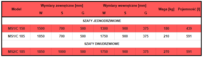 | WYMIARY ZEWNĘTRZNE [WxSxG] mm | 1850 x 1000 x 500 mm |