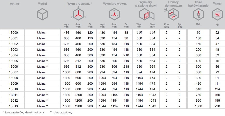 - Modele wyposażone w przestawne listwy hakowe, kolorowe, numerowane oraz uchwyt na spis.
