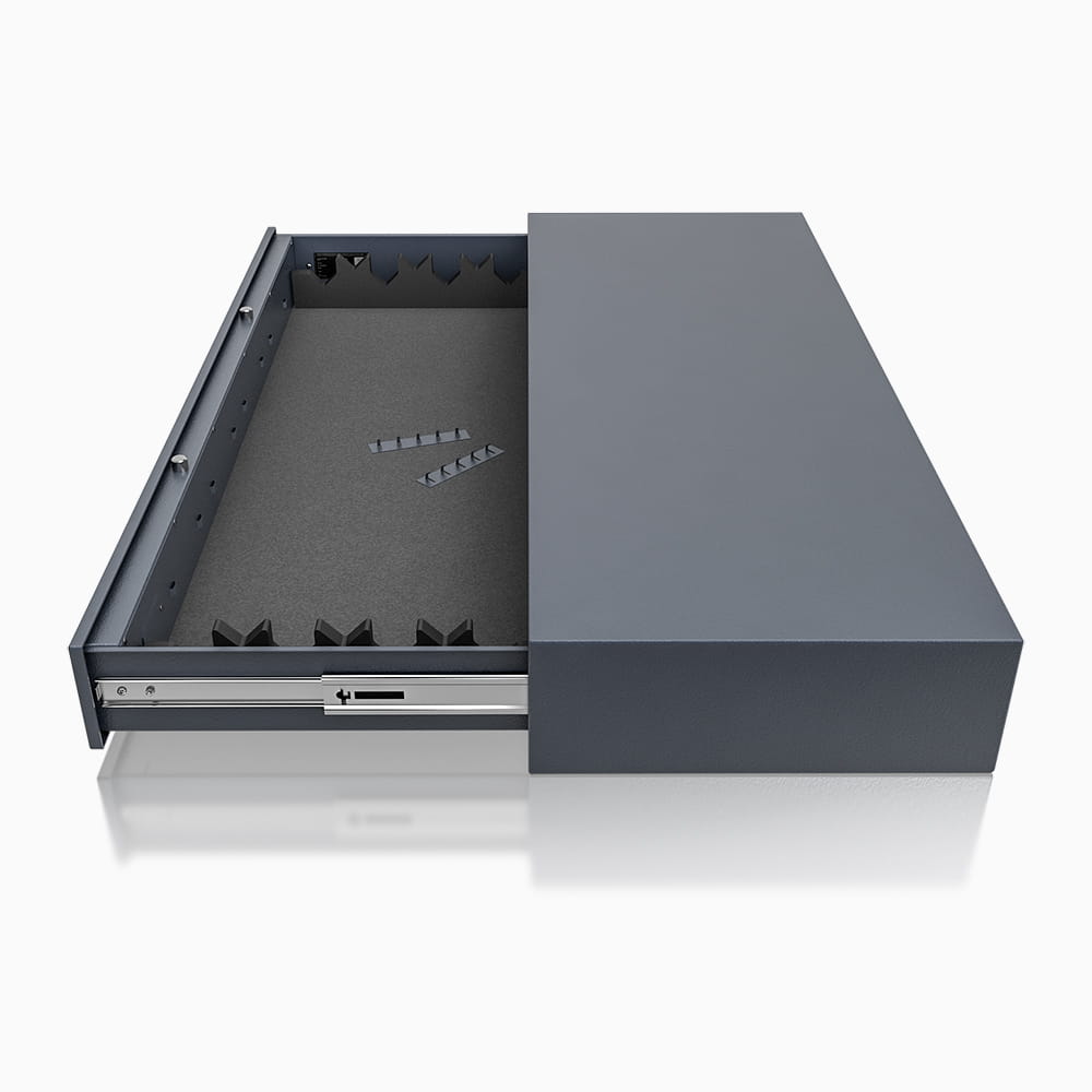 Szuflada w standardzie wyłożona jest wykładziną zabezpieczającą deponowaną broń przed porysowaniami. W wybranych modelach w celu zwiększenia funkcjonalności i wygody użytkowania - szuflada została wyposażona w piankowe uchwyty na broń.