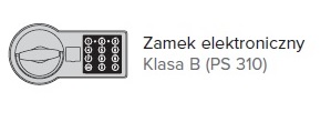 - Zamek drzwi: sejf zamykany atestowanym zamkiem elektronicznym w klasie B