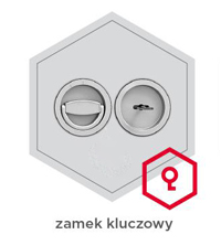 - Rodzaj zamknięcia: pokrętło metalowe wpuszczone w blat drzwi