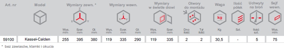 Sejf Kassel-Calden jest idealny do przechowywania dokumentów, broni krótkiej i amunicji. Przeznaczone dla firm, biur, urzędów, mieszkań prywatnych, sklepów, aptek, szpitali.