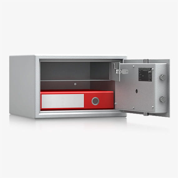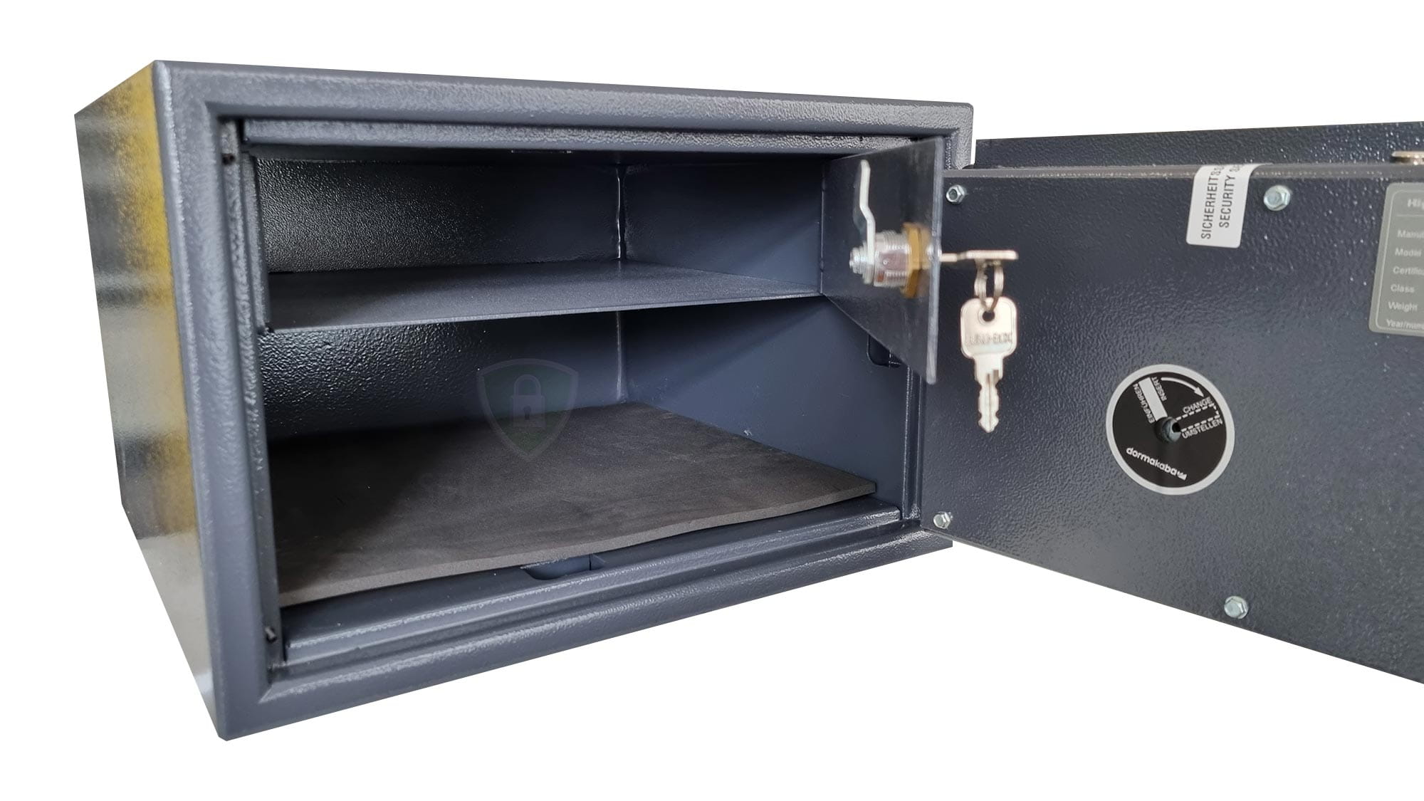 - Sejf zamykany zamkiem kluczowym VdSKlasa I/IMP-Klasa A (standardowo z dwoma kluczami o długości 65 mm)