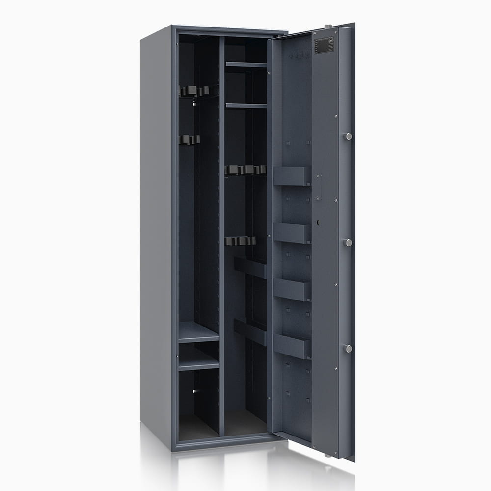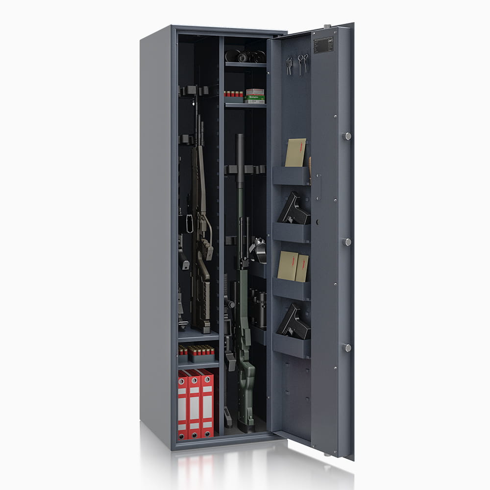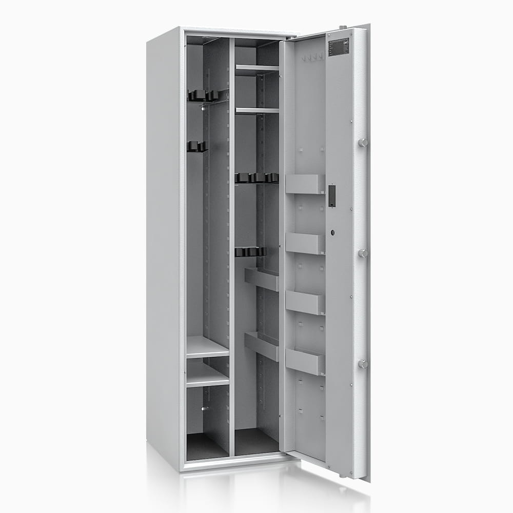 Poprzez możliwość przestawiania na wysokości półki jak i uchwytów na broń – można dowolnie spersonalizować wnętrze, umożliwiając dogodne ustawienie broni o różniej wysokości. Sejf standardowo wyposażony w dwie funkcjonalne przestawne na wysokości półki. Przestawne półki, regulują wysokość użytkową wewnątrz sejfu. Na drzwiach wewnątrz sejfu umieszczona listwa hakowa do zawieszania kluczy, lornetek oraz innych przedmiotów codziennego użytku. Dzięki nowej konstrukcji płyty osłonowej drzwi, zostały umieszczone na niej przestawne półki, które nie zabierają przestrzeni wewnątrz sejfu.