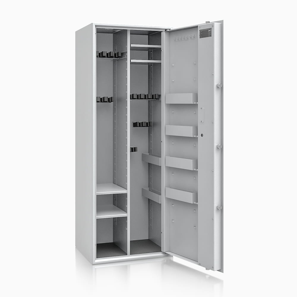 Poprzez możliwość przestawiania na wysokości półki jak i uchwytów na broń – można dowolnie spersonalizować wnętrze, umożliwiając dogodne ustawienie broni o różniej wysokości. Sejf standardowo wyposażony w dwie funkcjonalne przestawne na wysokości półki. Przestawne półki, regulują wysokość użytkową wewnątrz sejfu. Na drzwiach wewnątrz sejfu umieszczona listwa hakowa do zawieszania kluczy, lornetek oraz innych przedmiotów codziennego użytku. Dzięki nowej konstrukcji płyty osłonowej drzwi, zostały umieszczone na niej przestawne półki, które nie zabierają przestrzeni wewnątrz sejfu.