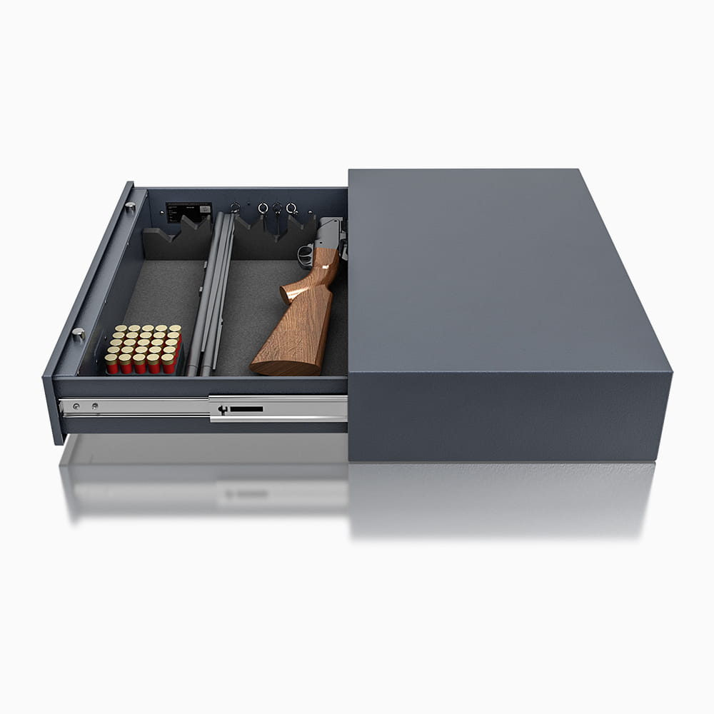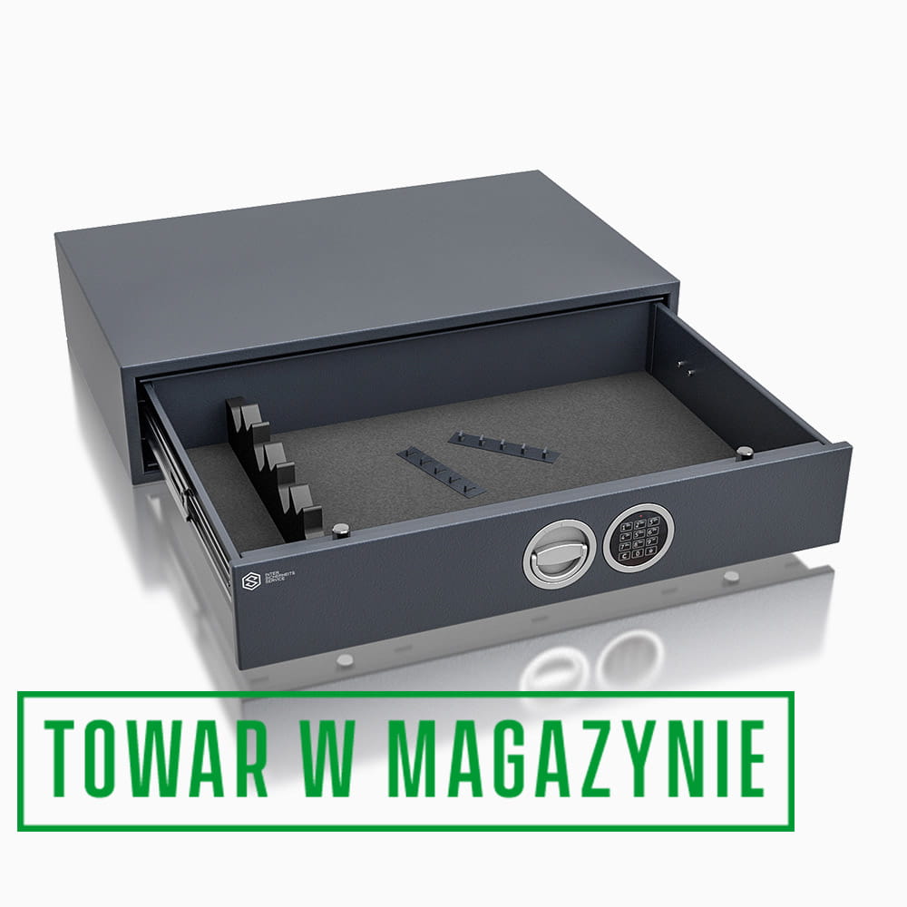 Szuflada w standardzie wyłożona jest wykładziną zabezpieczającą deponowaną broń przed porysowaniami. W wybranych modelach w celu zwiększenia funkcjonalności i wygody użytkowania - szuflada została wyposażona w piankowe uchwyty na broń.