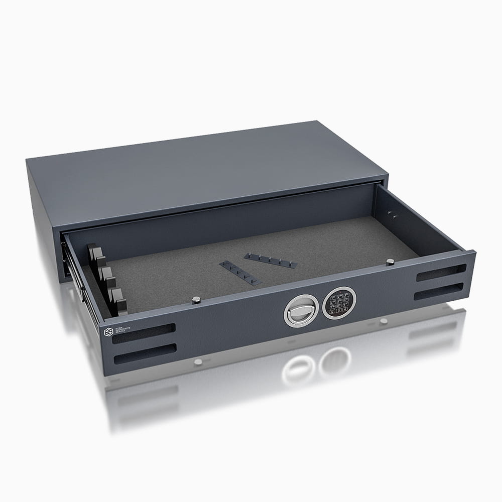 Szuflada w standardzie wyłożona jest wykładziną zabezpieczającą deponowaną broń przed porysowaniami. W wybranych modelach w celu zwiększenia funkcjonalności i wygody użytkowania - szuflada została wyposażona w piankowe uchwyty na broń.